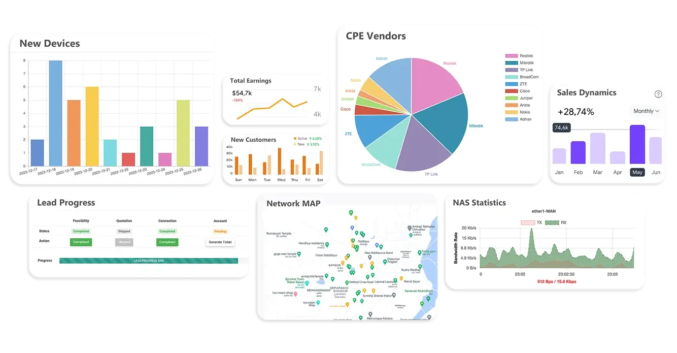 A single dashboard to manage your entire ISP business from franchises to field teams. Gain full visibility and control over branches, zones, and employees